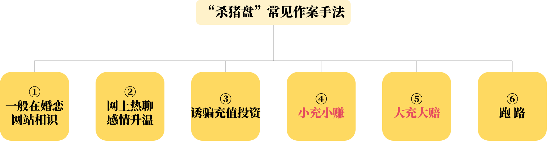 “杀猪盘”是指诈骗分子利用网络交友,诱导受害人投资赌博的电信诈骗方式。“杀猪盘”的相关角色、诈骗过程术语如下: