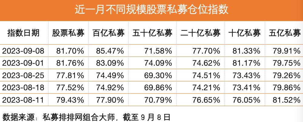 私募排排网数据显示,截至9月8日,百亿私募仓位为85.47%,是所有规模私募中仓位最高的。
