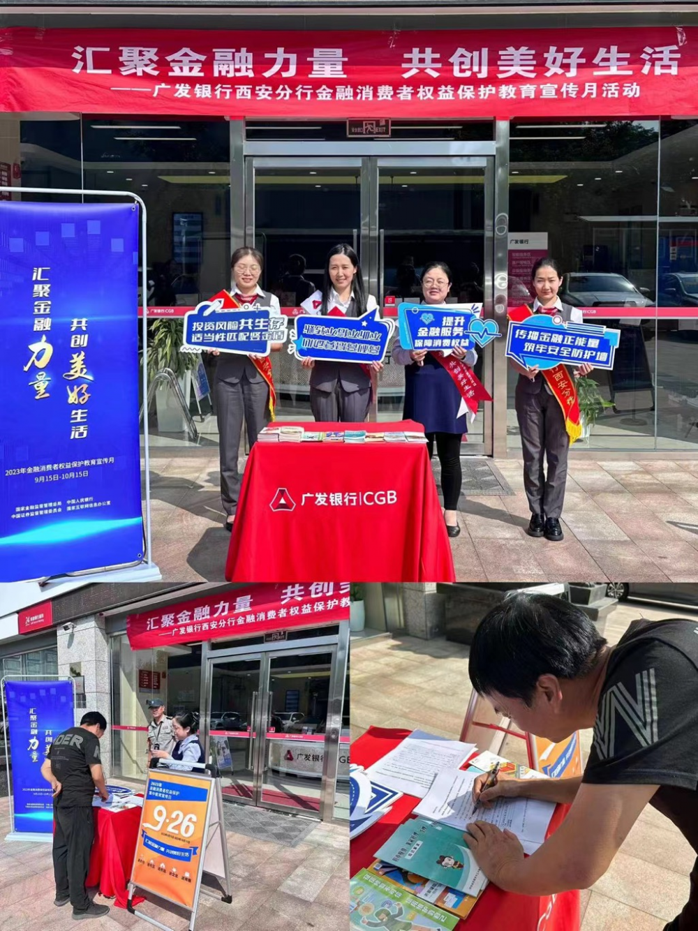 在本次“2023年金融消费者权益保护教育宣传月”活动中,广发银行西安分行按照监管部门及总行统一部署,迅速行动,积极组织辖内机构开展金融知识宣教活动。围绕“新小老乡”重点人群,通过线上线下多种渠道,宣教主题包括“党建+消保”暨“我为群众办实事”、“佳节游陕西,金融伴你行”等,旨在开展全方位、多角度、广覆盖地开展金融知识宣教活动。通过积极宣传惠及民生的良好做法和成效,展现金融消费者权益保护新担当、新气象。