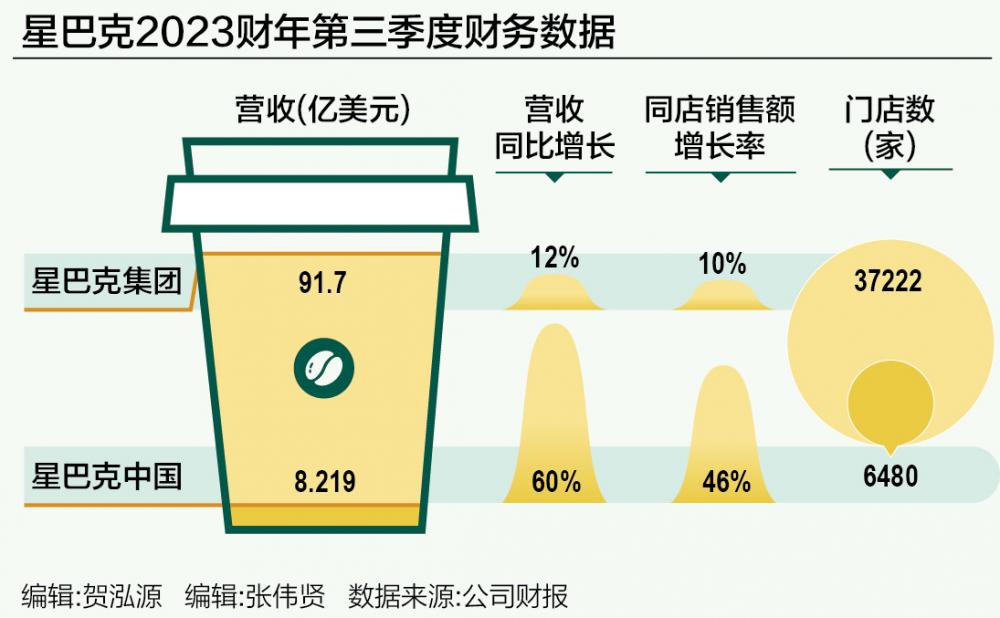 种种投入动力来自,中国市场成为星巴克发展引擎。2023财年第三季度(截至2023年7月2日)业绩报告显示,星巴克当期营收91.7亿美元,同比增长12%,不及市场预期的92.9亿美元;净利润为14.1亿美元,上年同期为9.13亿美元。同店销售额增长了10%,低于市场预期的11%。北美和国际市场的同店销售增长都低于预期,其中,北美同店销售额增长了7%,低于市场预期的8.4%;在北美以外,星巴克的同店销售额增长了24%,低于预期的24.2%。