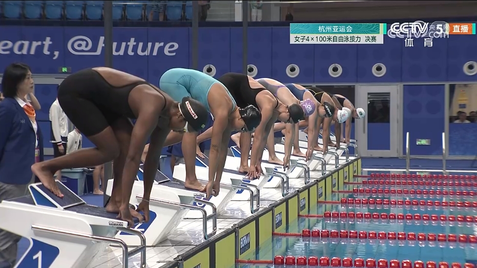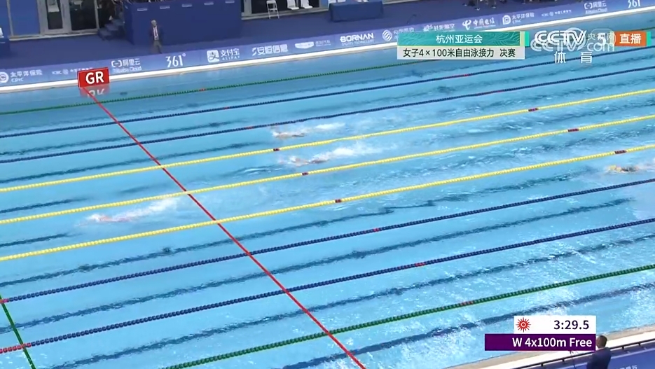 9月24日,杭州第19届亚运会游泳女子4×100米自由泳接力决赛,中国队夺得冠军,打破赛会纪录。祝贺,中国队包揽本届亚运会第一个决赛日游泳项目的7枚金牌。