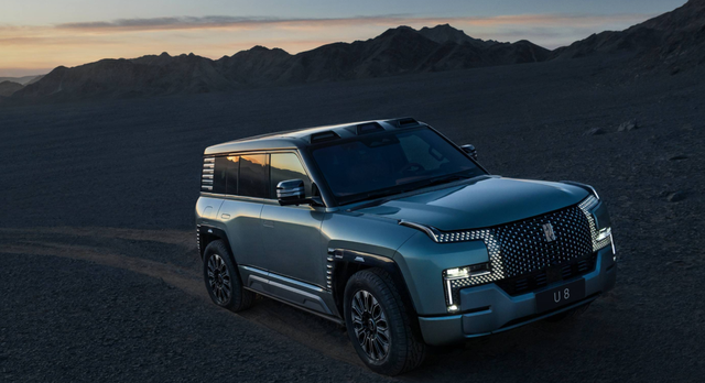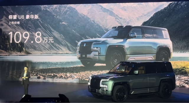 仰望U8是仰望品牌的首款车型,其定位是新能源越野车,其宣传重点包括硬派越野、高端以及豪华。其车长超过5米,车宽超过2米,整备质量超过3吨,能像坦克一样实现原地掉头。续航方面,仰望U8采用增程动力模式,CLTC综合工况下续航为1000公里。