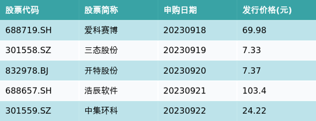 上周有5只新股发行,详情见下表: