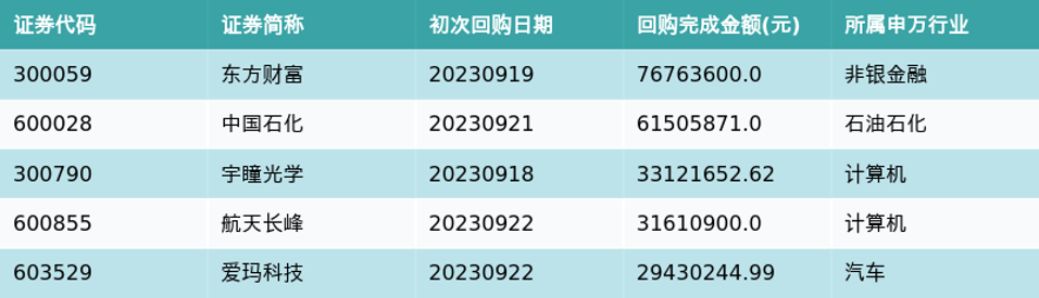 上周共有28条开始执行回购公告,其中执行金额最多的5条公告为: