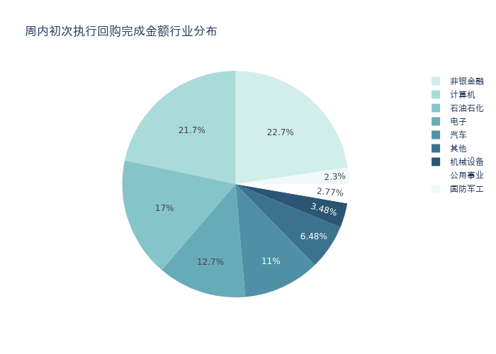 按照初次执行金额所在不同行业分布,金额最高的3个行业分别为:非银金融、计算机、石油石化,详情见下图: