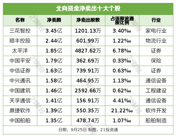 据21投资通智能监测,9月25日,北向资金净卖出80.39亿元,其中沪股通净卖出42.43亿元,深股通净卖出37.96亿元。