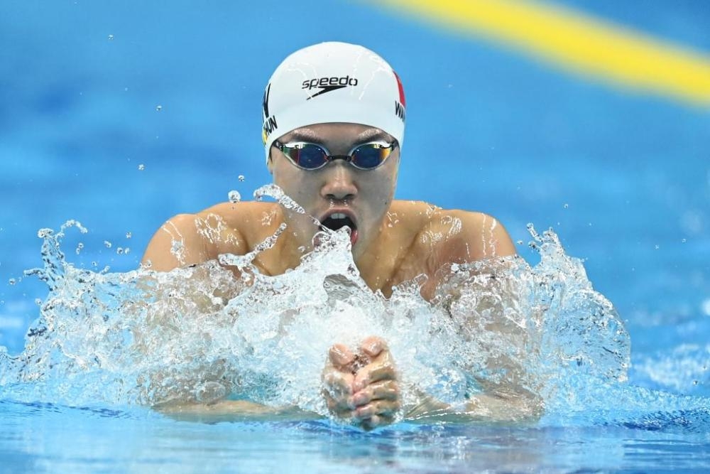 9月25日,“蛙王”覃海洋在男子100米蛙泳比赛中一日内两破赛会纪录,并凭借57秒76的成绩获得本届亚运会的个人首金。