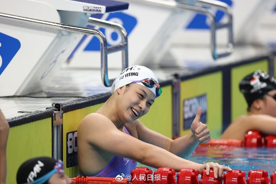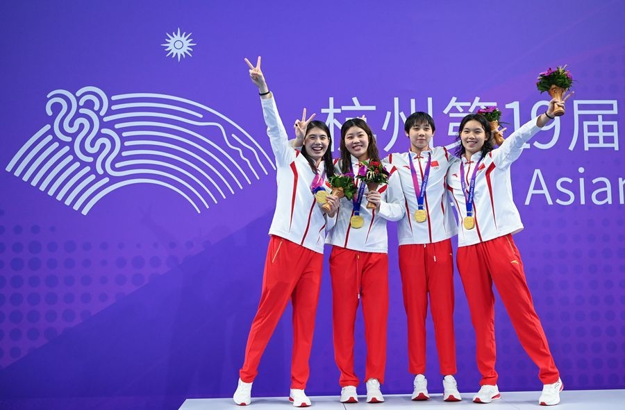 9月24日,女子4x100米自由泳接力决赛,由杨浚瑄、程玉洁、吴卿风和张雨霏组成的中国队优势明显,最终以3分33秒96破赛会纪录的成绩夺得冠军。