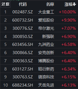 A股主要宽基指数早盘多数走强。截至发稿,中证800指数(000906)上涨近0.5%,成分股多数上涨。其中,大金重工涨停,爱旭股份逼近涨停,帝尔激光涨超7%,新强联、九洲药业、安克创新、博腾股份、昭衍新药、锦浪科技、天岳先进等涨逾6%。