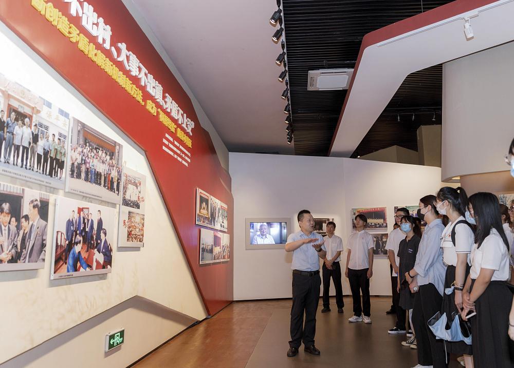 青年学子在浙江省诸暨市枫桥镇的枫桥经验陈列馆参观学习(2022年8月25日摄)。新华社记者 徐昱 摄