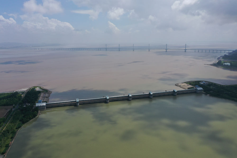 2023年8月4日拍摄的曹娥江大闸(无人机照片)。新华社记者 黄宗治 摄