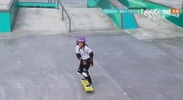 9月27日,杭州第19届亚运会滑板女子街式决赛,中国13岁选手崔宸曦夺得金牌,曾文蕙获得银牌。