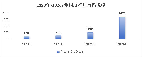 据Frost&Sullivan数据,2021年我国人工智能芯片市场规模达到251亿元,同比增长41%。预计在政策、市场、技术等合力作用下,中国AI芯片行业将快速发展,预计2023年市场规模有望突破500亿元,2026年有望达到1675亿元。