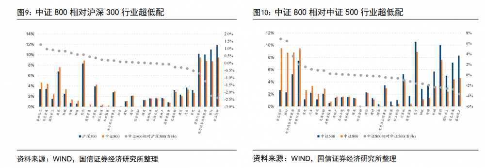 国信证券指出,2021年四季度以来,行业和板块的轮动不断加剧。在这样的背景下,想要精准捕捉行业之间的轮动效应可谓难上加难,行业的均衡配置显得尤为重要,而中证800在行业上相比沪深300、中证500更为均衡,具体而言,沪深300在金融、消费等传统行业板块的占比较高,中证500则在制造、周期等行业板块上占比较高,中证800有效地将两个指数的特点进行融合,相对沪深300超配了化工、有色金属等行业,而相对中证500又超配了食品饮料、银行等传统行业,最终在行业上,兼顾成长和价值,更为均衡。