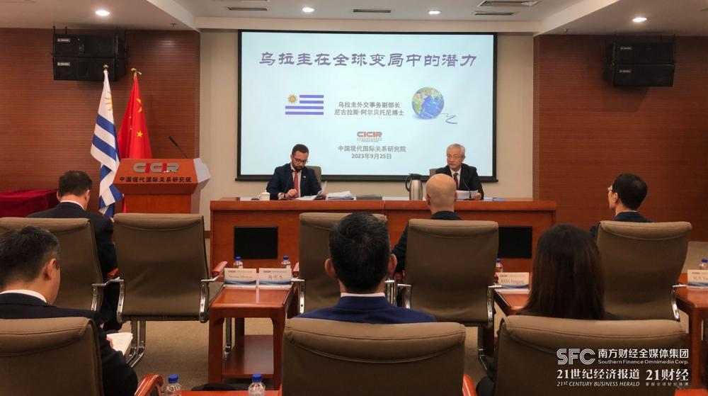 中国现代国际关系研究院院长杨明杰在会上称,中国与乌拉圭虽远隔万里,但互为值得信赖的战略伙伴。两国自2016年建立战略伙伴关系以来,政治互信不断巩固、务实合作日益深化、多边事务领域密切合作。当前,中国已成为乌拉圭最大贸易伙伴。今年恰逢中乌建交35周年,展望未来,两国前景广阔,合作潜力巨大。