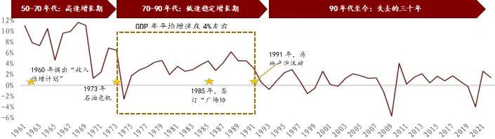 石油危机带来严重通胀,GDP增速放缓。二战后,日本乘科技革命的浪潮,大力发展工业投资和耐用品制造,成为世界第二大经济强国。然而,1973年,石油输出国组织(OPEC)宣布暂停石油出口,国际石油价格暴涨,给日本带来严重的输入性通货膨胀,之后日本经济由“神武景气”的繁荣景象转为低速增长期。