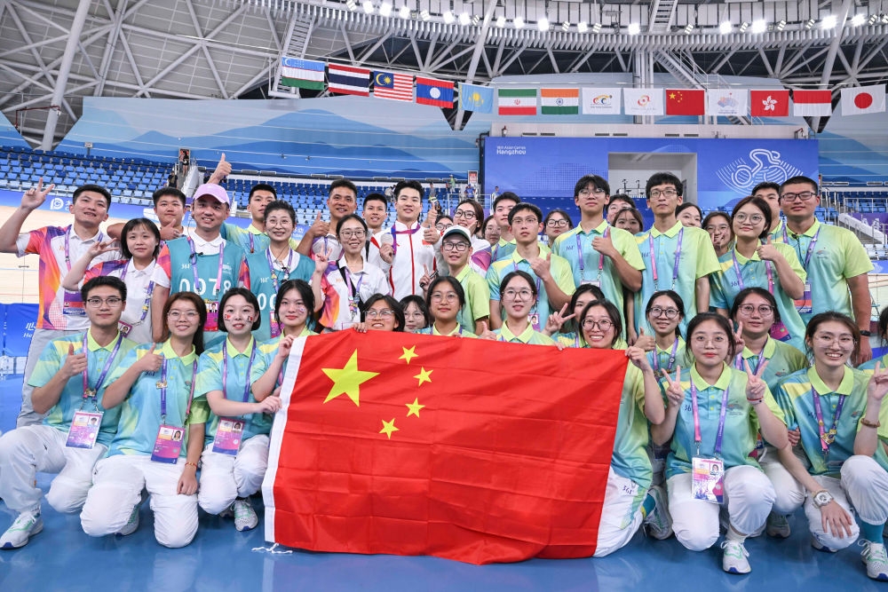 杭州亚运会竞赛指挥中心新闻发言人朱启南介绍,作为参赛规模最大的一届亚运会,本届亚运会开赛以来,共有4573名技术官员、78支竞赛团队、31个独立训练场馆团队、1534名升旗手和礼仪人员和839名体育展示工作人员,围绕运动员参赛需求,各司其职、相互配合,在各自的岗位上紧张有序地开展工作。