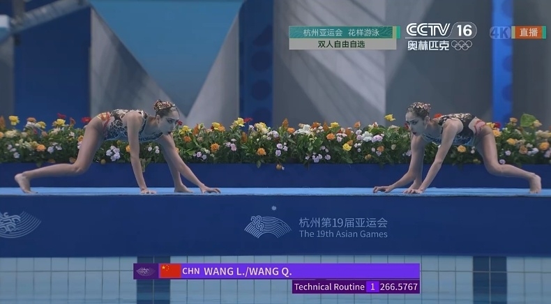 10月7日,杭州第19届亚运会花样游泳双人项目结束争夺,中国组合王柳懿/王芊懿夺得金牌。