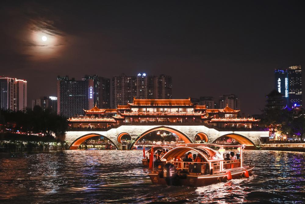 在成都,文化传承历久弥新。杜甫的诗歌在这个“超级黄金周”有了新的演绎方式——“窗含西岭千秋雪——2023中秋音乐会”在雪山下奏响,“月亮上写诗”2023中秋诗会,又融合灯光秀和无人机表演,让传统中秋佳节诗意盎然、新意十足。
