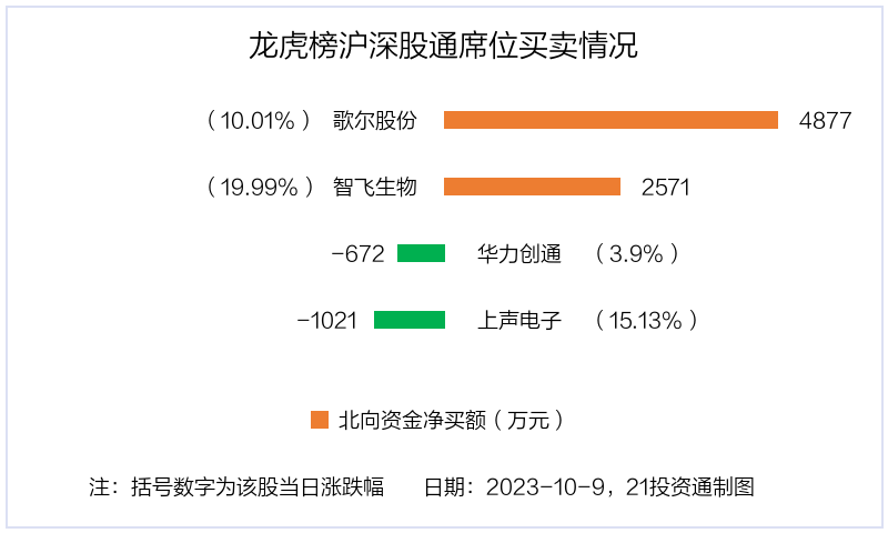 10月9日,北向资金参与龙虎榜中的个股共有4只,合计净买入5754.92万元。其中沪股通净卖出1 股,合计净卖出1021.12万元;深股通净买入2 股,净卖出1 股,合计净买入6776.04万元。