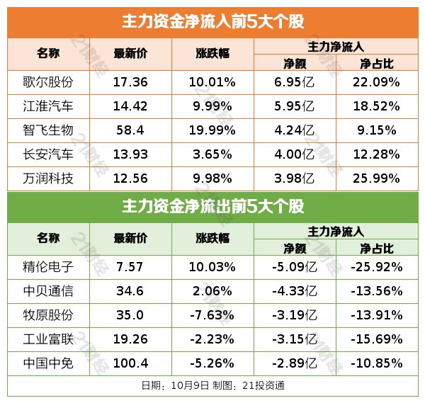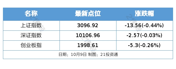 10月9日,大盘全天探底回升,三大指数均小幅下跌。截至收盘,沪指跌0.44%,深成指跌0.03%,创业板指跌0.26%。盘面上,华为概念股继续活跃,高压快充概念股集体走强,减肥药概念股探底回升,算力概念股午后拉升。下跌方面,大消费板块集体调整,旅游、影视等方向领跌。总体上个股跌多涨少,两市超3300只个股下跌。沪深两市成交额7700亿,较上个交易日放量528亿。