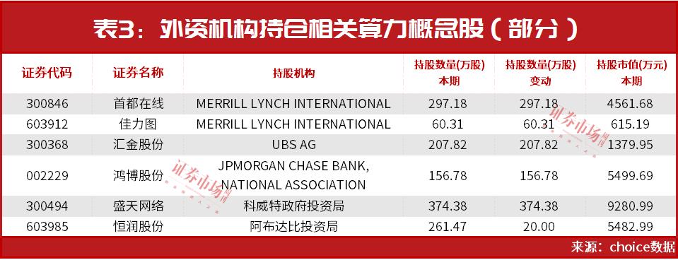 从相关算力公司披露的最新一期股东持仓来看,就有众多外资机构增仓的身影,其中,不乏一家外资机构持仓多只算力概念股,如美林国际(Merrill Lynch International),在上市公司披露的今年二季度末股东持仓中,其就现身首都在线、佳力图等算力概念股前十大流通股股东,截至二季度末,美林国际以297.18万股的持仓量新进成为首都在线第六大流通股股东;以60.31万股的持仓量新进成为佳力图第十大流通股股东。