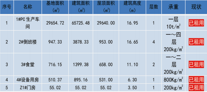 占地面积:总用地面积92950.92m²(约139.43亩),1#PC生产车间59309.44m²,1#门卫房55.02m²,2#倒班楼:3878.33m²,3#食堂1399.38m²,4#设备用房895.16m²,厂房为装配式钢结构、倒班楼为装配式混凝土结构。
