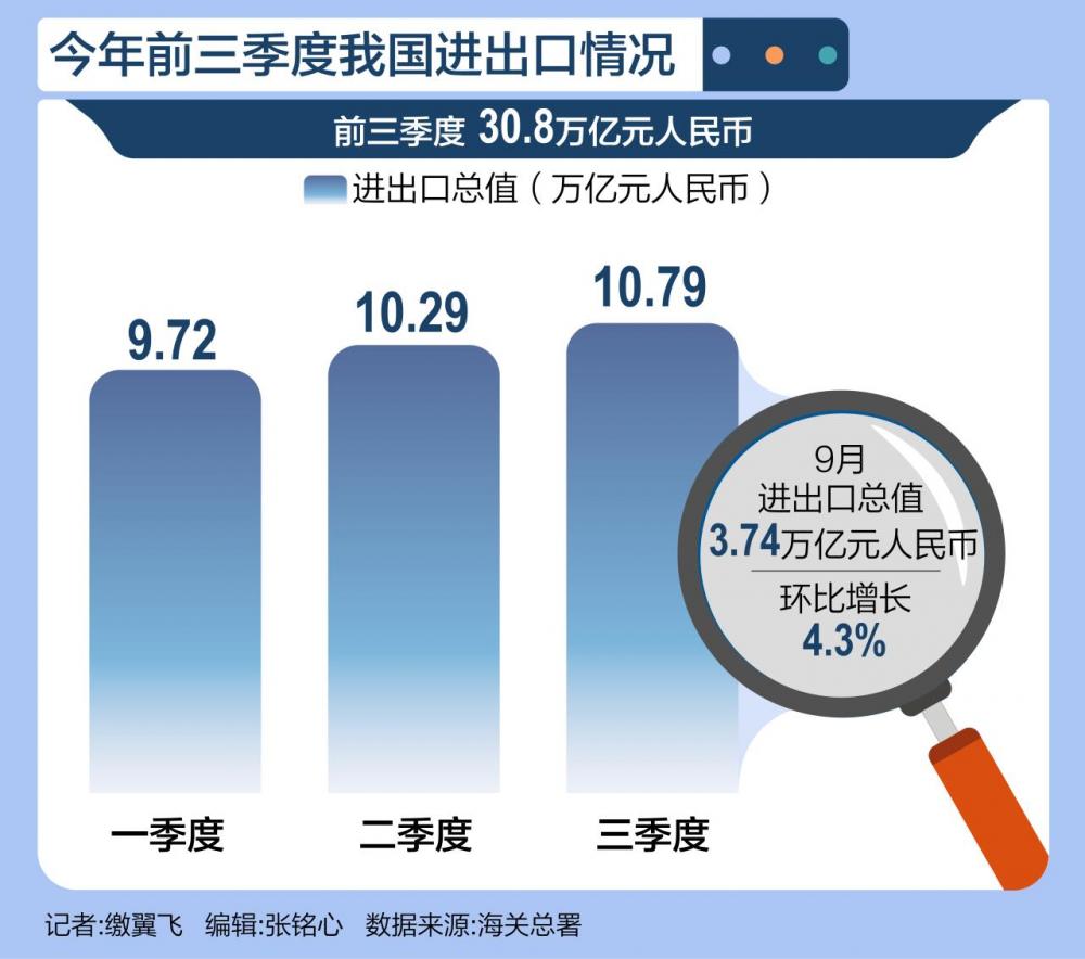 前三季度外贸“量增价减” ,9月份进出口规模创年内新高