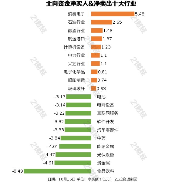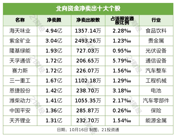 据21投资通智能监测,10月16日,北向资金净卖出64.77亿元,其中沪股通净卖出37.27亿元,深股通净卖出27.5亿元。