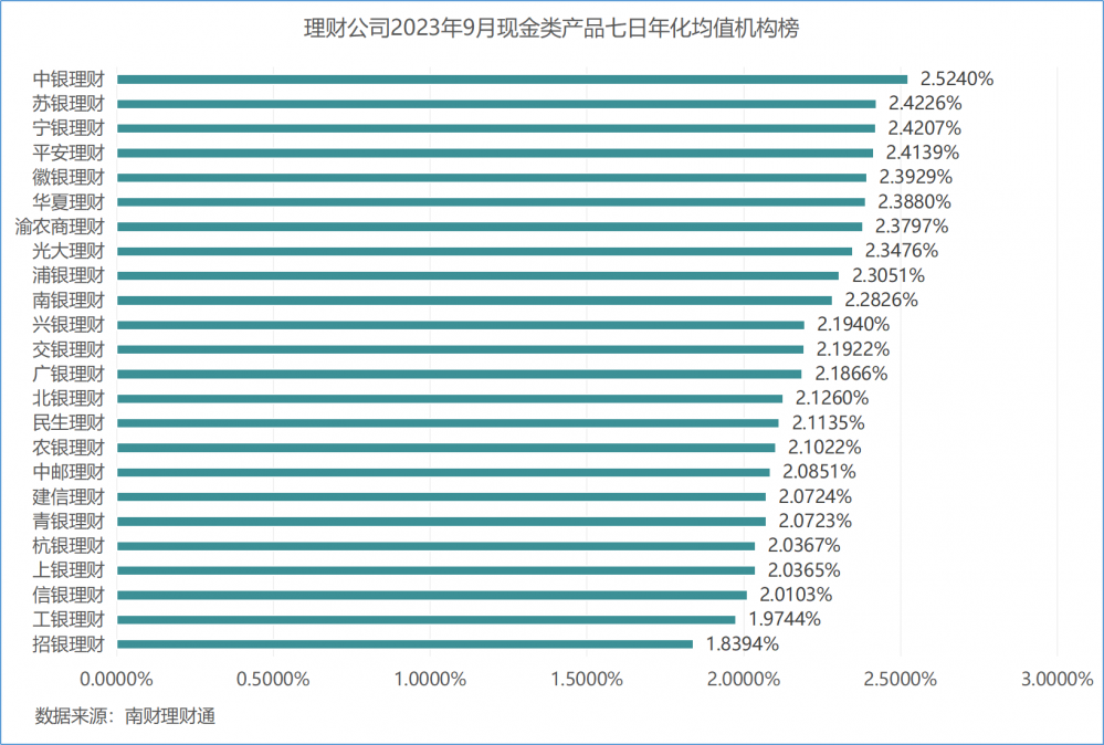 南财理财通数据显示,截至9月30日,理财公司2023年9月现金类产品七日年化均值榜单出炉,共有9家理财公司产品上榜。