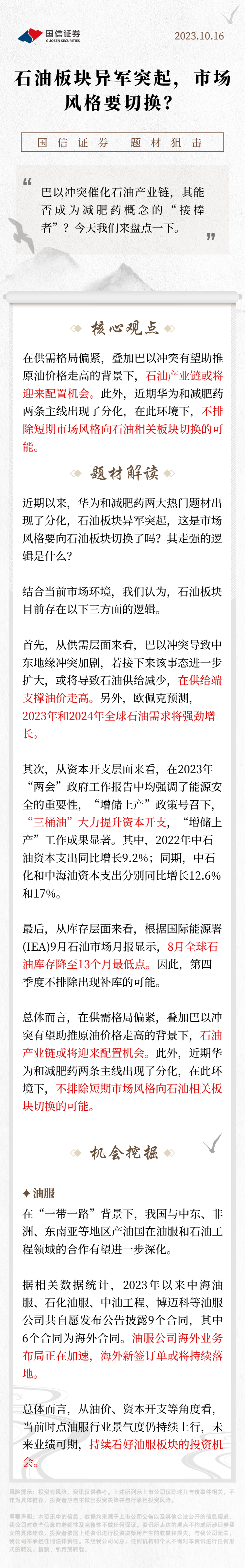 题材狙击 | 石油板块异军突起,市场风格要切换?