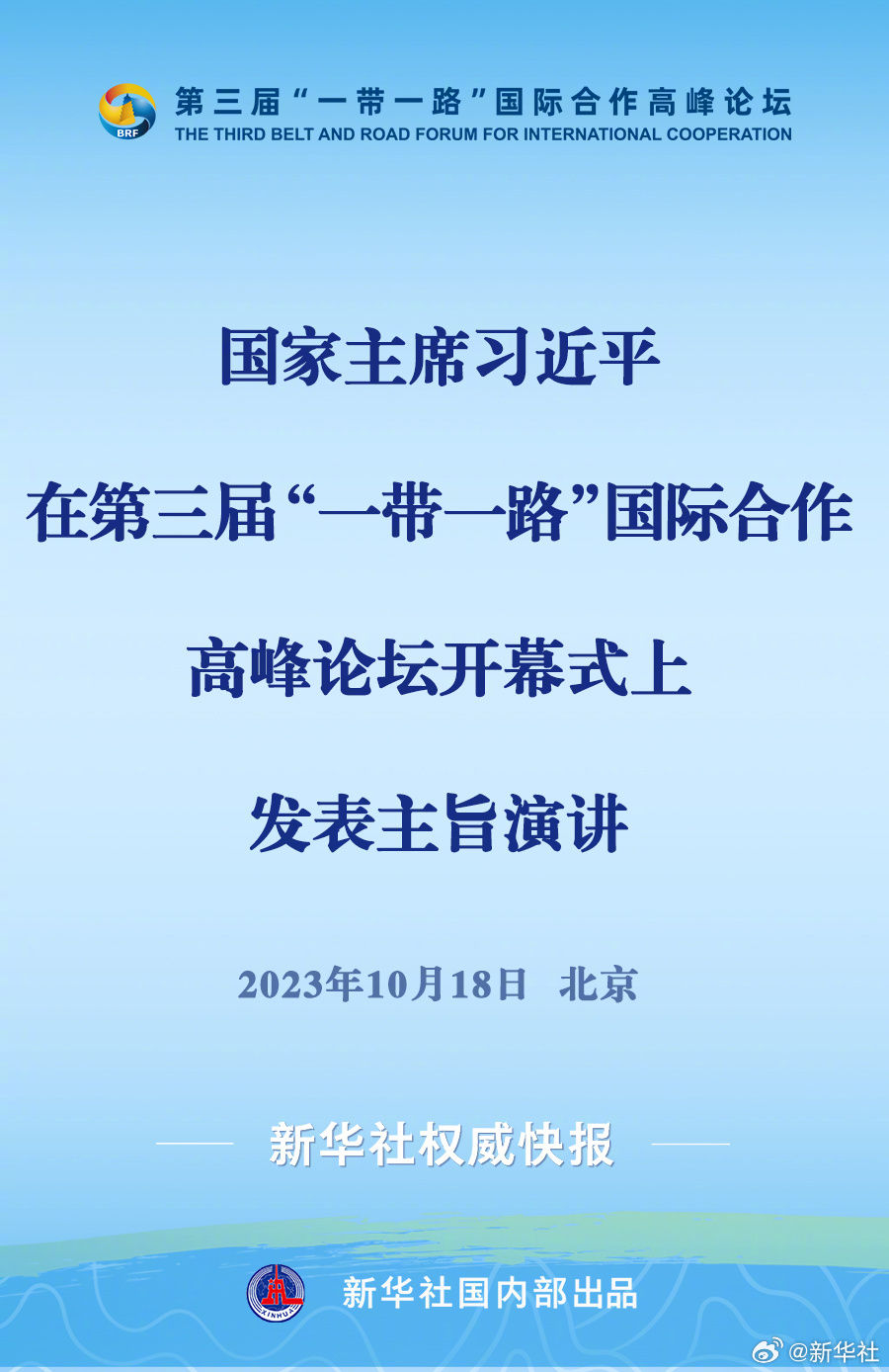 10月18日,国家主席习近平在第三届“一带一路”国际合作高峰论坛开幕式上发表主旨演讲。