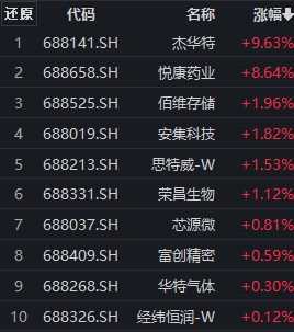 科创板芯片概念股早盘延续反弹态势。截至发稿,科创100(000698)成分股杰华特大涨超9%。科创100(000698)早盘跌超1%,成分股多数下跌。上涨个股中,除杰华特外,悦康药业涨超8%,佰维存储、安集科技、思特威-W、荣昌生物涨逾1%,芯源微、富创精密、华特气体、经纬恒润-W跟涨。