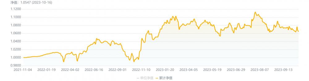 截至2023年上半年末,该产品维持较高的权益仓位,股票直投占总资产的比例为48.1%,值得注意的是,该产品今年一二季度末持仓中出现了商品及金融衍生品的身影,上半年末商品资产持仓为理财计划资金的0.15%。与一季度末前十大持仓相比,二季度末,债券个券持仓基本维持;权益持仓上更换为港股“天工国际”“中国海外发展”和“波司登”。天工国际有限公司主要业务包括生产和销售模具钢、高速钢、切割工具和钛合金。
