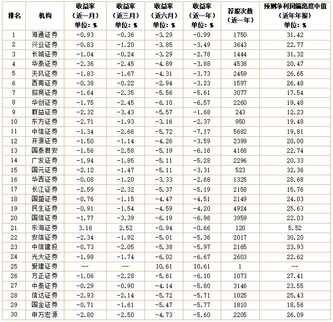 投资快报投研通数据显示,排名第一的海通证券最近一年荐股1750次。近一个月、近三个月、近六个月和近一年收益率分别为-0.93%、-0.36%、-3.29 %、-0.99%和31.42%。公开资料显示,海通证券成立于1988年,在三十多年的经营中成功渡过了多个市场和业务周期、监管改革和行业转型发展。建成了涵盖证券期货经纪、投行、自营、资产管理、私募股权投资、另类投资、融资租赁、境外投行等多个业务领域的金融服务企业。