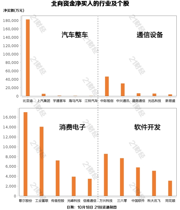 净买入比亚迪18.23亿元,净卖出江淮汽车2.95亿元