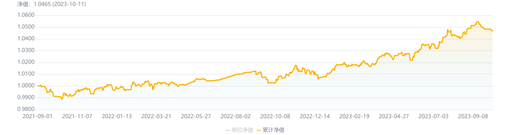 从收益情况看,该产品首个投资周期表现不佳,第二个投资周期产品表现较好净值增长率为3.88%,截至10月11日,该产品累计净值为1.0465,成立以来年化收益率为2.2%。