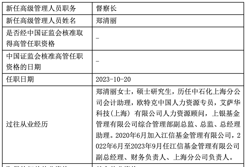 而接任督察长职位的是原江信基金上海分公司负责人郑清丽。