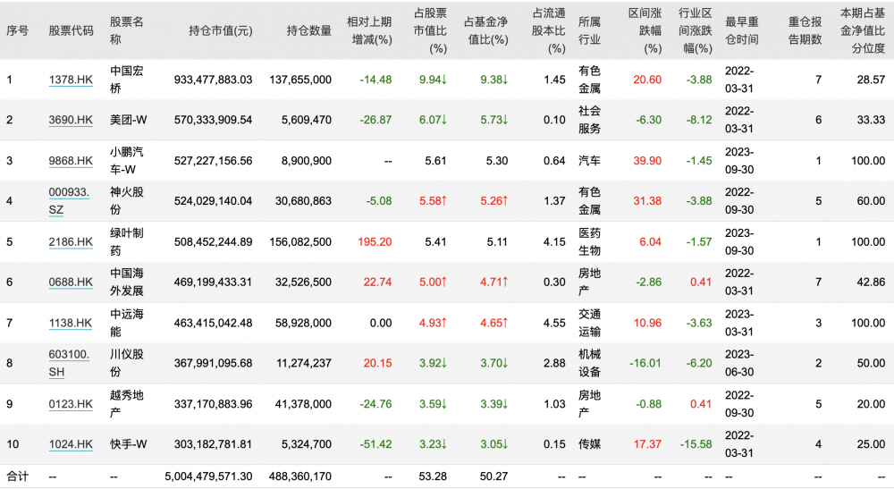 三季度,丘栋荣的一大持股特点是重配港股,其中小鹏汽车- W(09868.HK)成为“新宠”。总体来看,丘栋荣重仓有色金融、互联网、汽车、房地产、医药生物等方向。