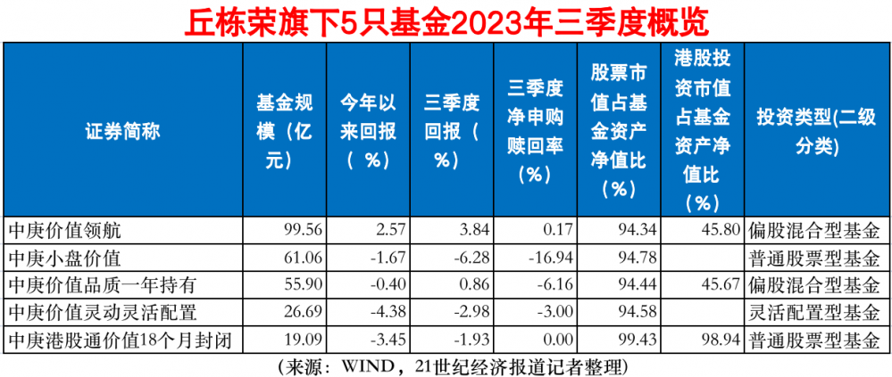 10月20日,明星基金经理丘栋荣旗下5只基金披露三季报。