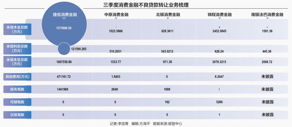 尽管消费金融机构整体业务规模巨大,但据21世纪经济报道记者梳理三季度消费金融公司不良贷款转让业务公告发现,仅有捷信消金、中原消金、北银消金、锦程消金、南银法巴消金等5家机构在今年三季度挂牌。