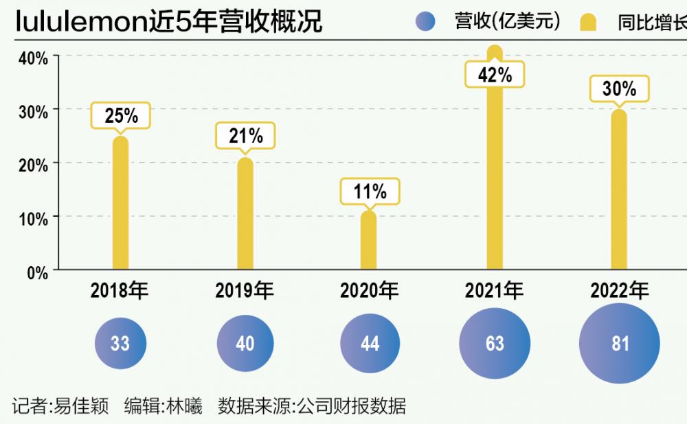 2022年,lululemon凭借瑜伽服爆品打败阿迪达斯,成为全球第二大服装集团,仅次于耐克。眼下,Lululemon的增速并未停止,2023财年第二季度报告显示,lululemon销售额同比增长18%至22.1亿美元,中国市场迎来强劲涨幅,同比增长61%。