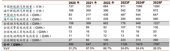 图:全球锂电池(含储能)需求估计。资料来源:GGII、EVTank、招商证券