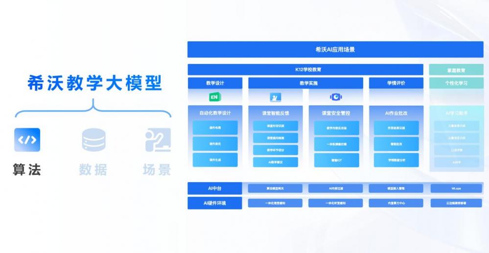 希沃教学大模型的落地应用,未来将横跨交互智能平板、希沃学习机等硬件和希沃白板、课堂智能反馈系统等软件,涵盖课前、课中、课后教学全链条,涉及校内教育和家庭教育多场景。