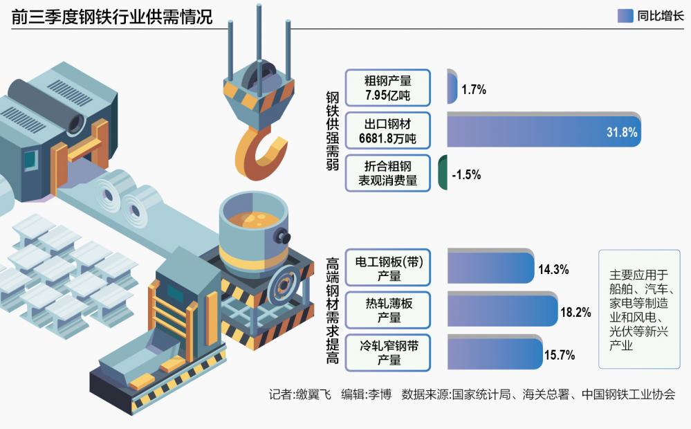 前三季度钢铁行业供强需弱 出口及制造业需求成主力