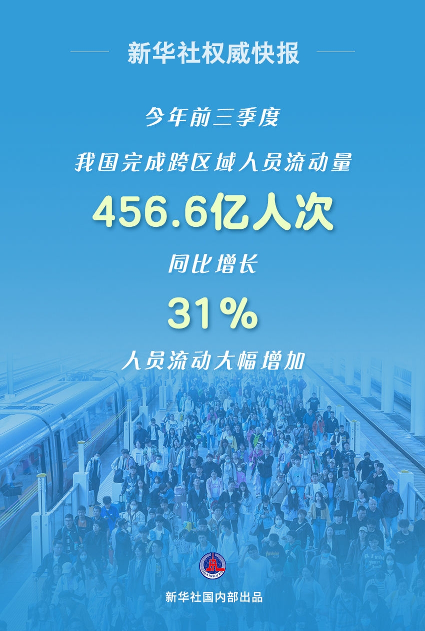 今年前三季度我国完成跨区域人员流动量456.6亿人次