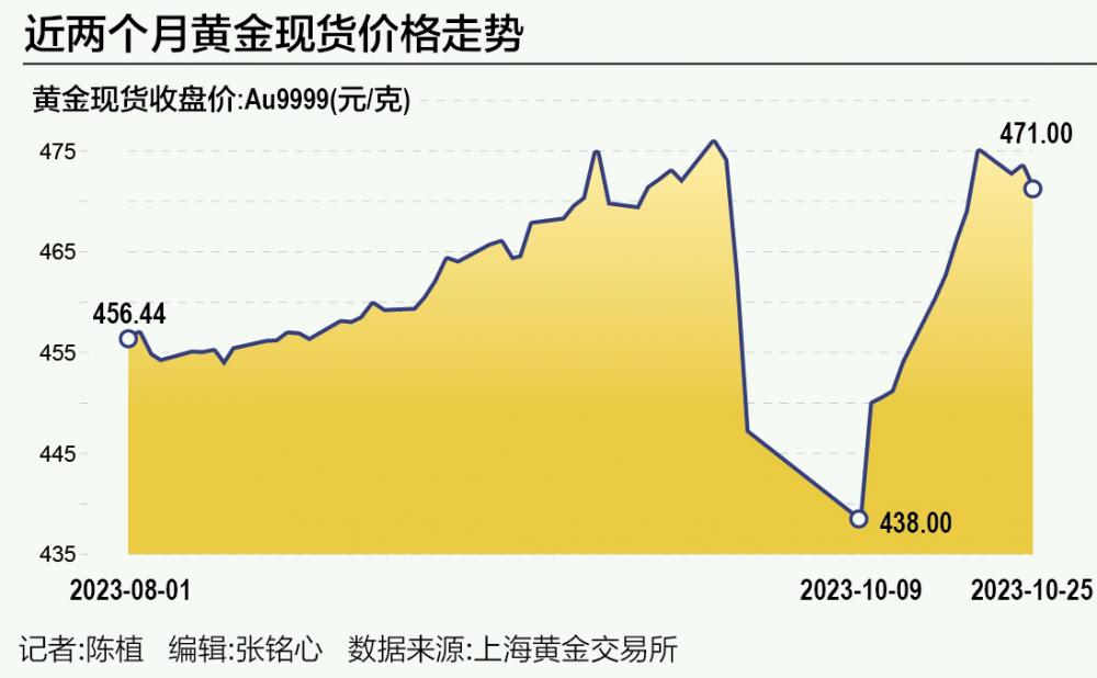 与此同时,上海黄金交易所的黄金延期主力合约收盘报在473.9元/克,离9月中旬创下的历史高点480.5元/克仅有一步之遥。