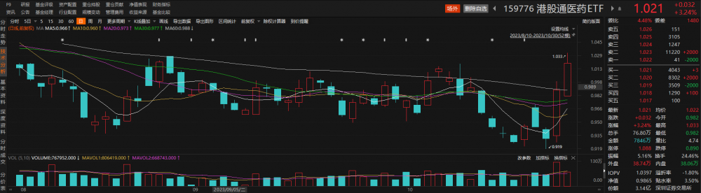 跟踪中证港股通医药卫生综合指数的港股通医药ETF(159776)再度大涨,交投持续活跃。截至发稿,该ETF上涨3.24%,换手率超24%。