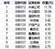 上证科创板芯片指数前10大成份股