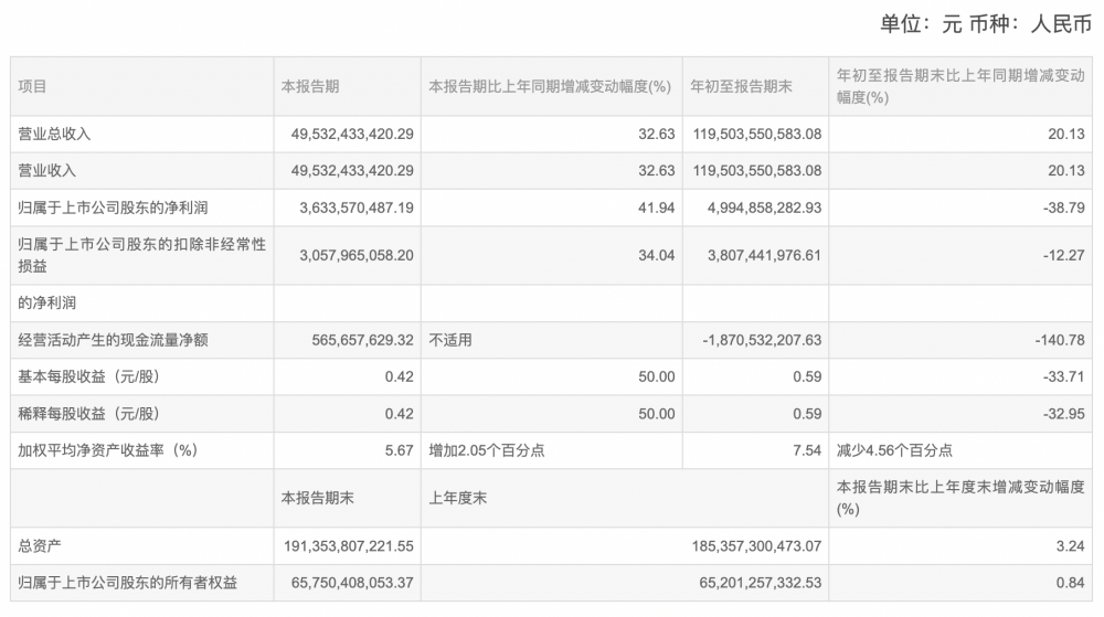 长城汽车发布的财报显示,今年第三季度,长城汽车营业收入达495.32亿元,同比增长32.63%;归母净利润为36.35亿元,同比增长41.94%;扣非归母净利润达到30.58亿元,环比增长216.40%,创历史新高。